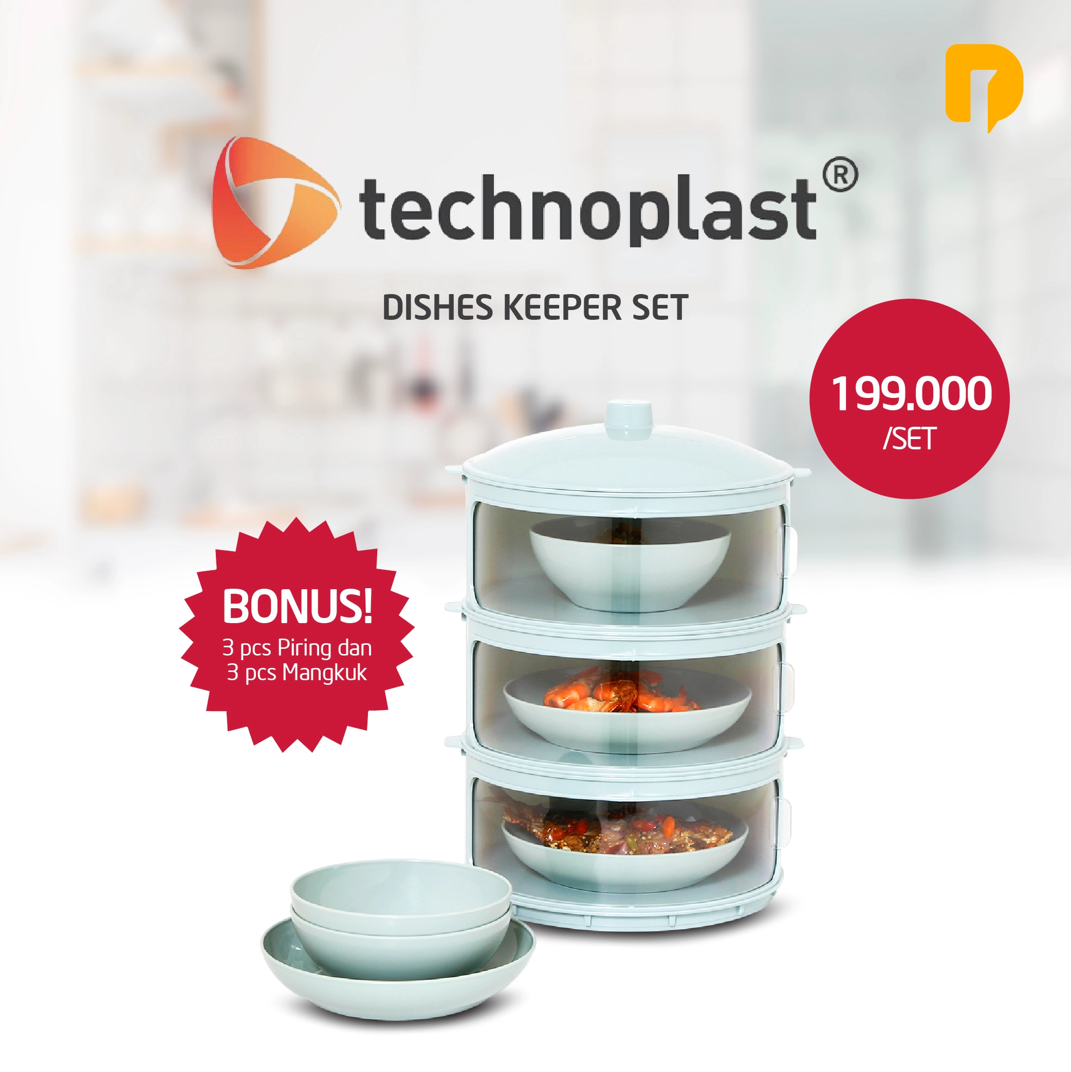– BONUS: 3 pcs Piring Diameter: 8 inch dan 3 pcs Mangkuk, Diameter: 6 inchi Kapasitas: 780 ml Material plastik